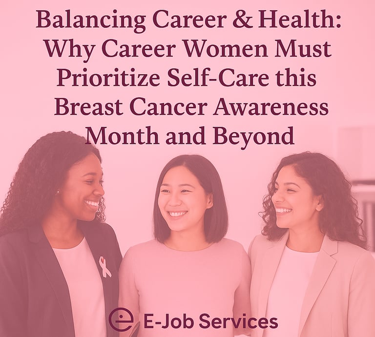 This feature explores the vital connection between professional success and personal well-being in recognition of Breast Cancer Awareness Month. It highlights how career women can balance ambition with self-care, emphasizing the importance of regular screenings, mindful wellness habits, and supportive workplace cultures. Through practical tips and empowering insights, E-Job Services encourages women to prioritize their health, not just in October, but throughout every season of their journey. 💗 Empowered women build stronger futures , in career, in health, and in life. 🌸