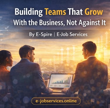 At E-Job Services, we support organisations in building teams that grow with the business, not against it, through intentional recruitment, job design, performance support, and workforce advisory services.